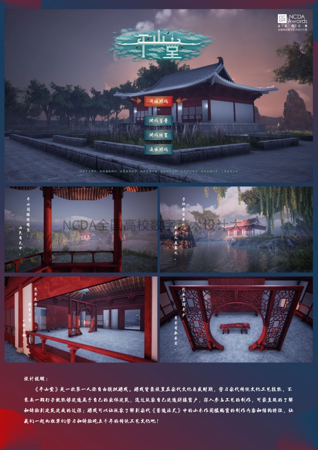 未来设计师·全国高校数字艺术设计大赛(NCDA)大赛自2012年开始,每年举办一届,是一项高规格高水平的专业赛事,拥有广泛的知名度与参与度,成为艺术设计领域专业的品牌赛事。大赛是教育部中国高等教育学会发布的《全国普通高校学科竞赛排行榜》内竞赛项目,是高校教育教学改革和创新人才培养的重要竞赛项目之一。