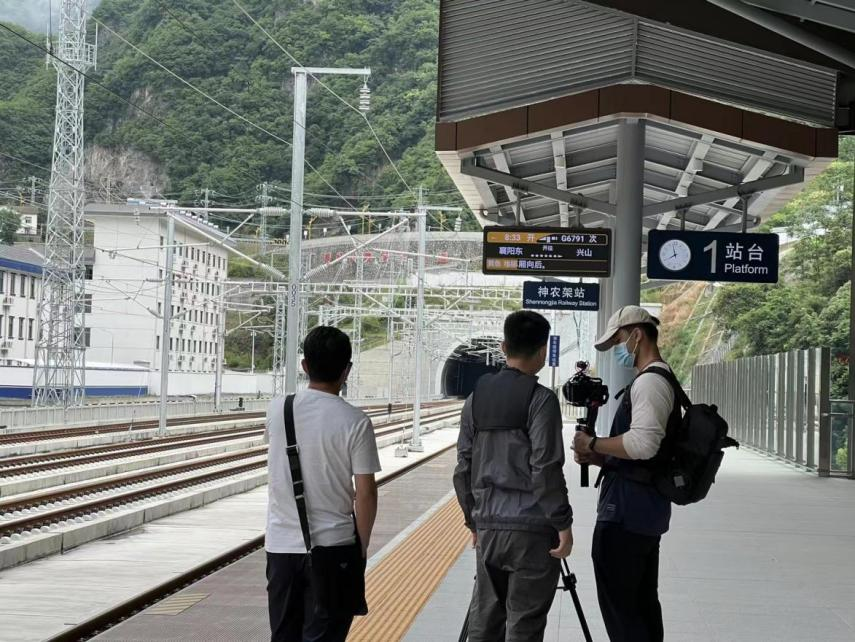 随着郑渝高铁全线通车,神农架地区结束不通高铁的历史,正式跨入高铁时代,彻底打破了制约当地旅游业发展的瓶颈,实现了“铁公机”三种立体交通通达。为珍藏神农架林区变化发展的时代记忆,丰富中国高铁发展历程的影像资料,提升学生的“四力”专业实践能力,6月18日—7月9日,伟德国际1946bv官网金宜鸿教授带领学院“四力”研究生实践团——广播电视和艺术设计专业研究生林蕴婧、黄欣艺、夏添、张晨薇等一行5人,跨越2000多公里,在神农架林区进行了为期22天的纪录片《高铁开进神农架》拍摄。