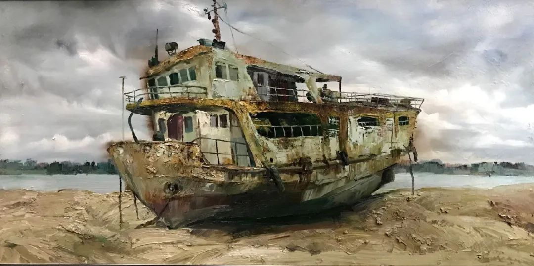 沈祥胜《登陆艇改装的货船》 油画80X120cm2017