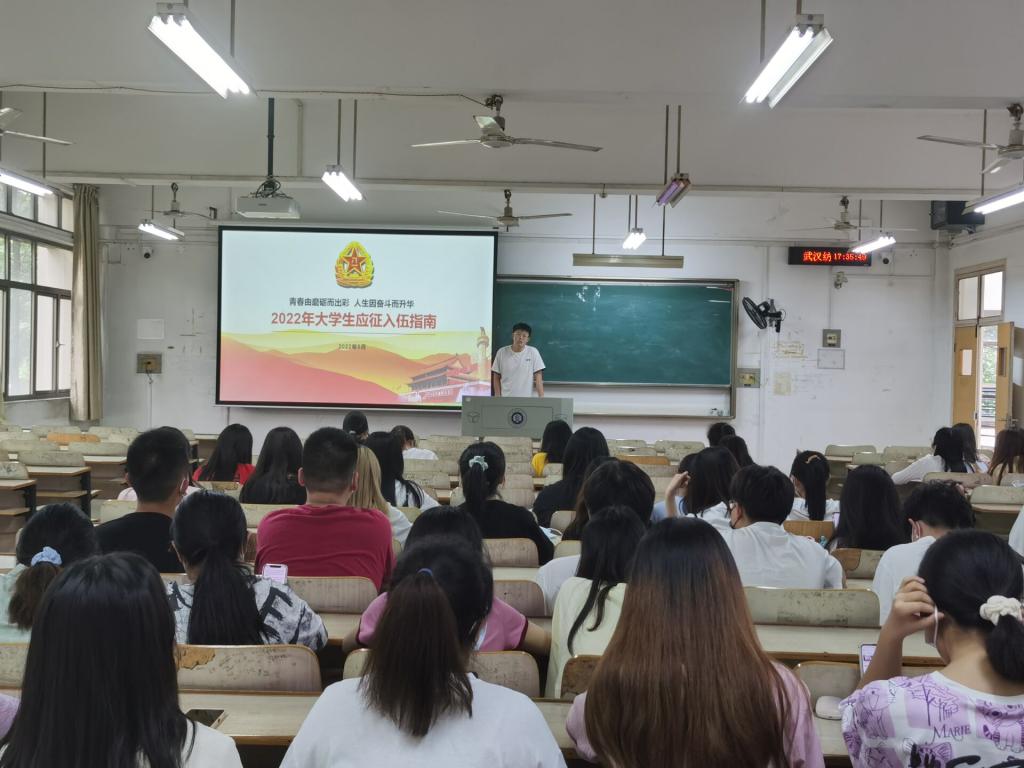 为扎实做好2022年征兵宣传工作,响应国家征兵政策,增进同学们对国防知识和国家征兵入伍政策的了解,激发在校大学生参军报国热情。5月10日传媒学院邀请退役士兵王鹏开展国防教育专题讲座暨征兵宣传活动。