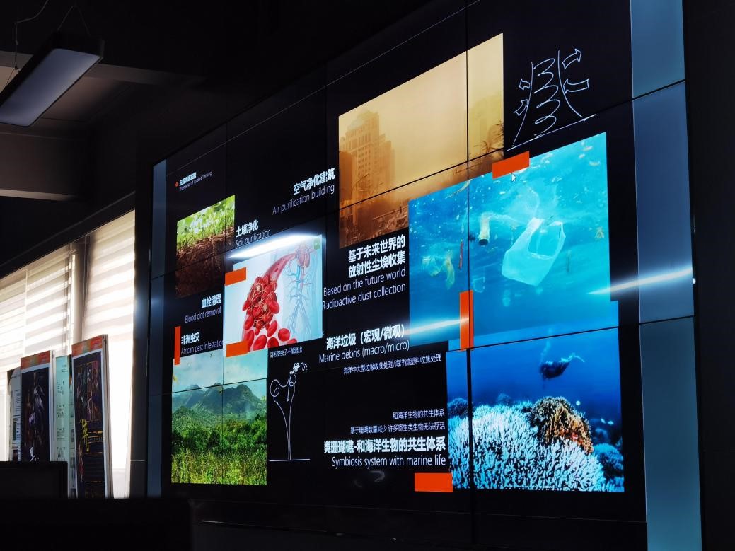 邱松教授带领的数十位研究生组成4个团队,围绕“通过松针叶子凝水原理检验防毒气口罩”、“基于猪笼草树池系统设计开发抽水马桶”、“基于螺旋狸藻根状叶‘捕虫陷阱’的设计研究”、“卷柏含水量”等主题进行了项目汇报和创作探讨。邱松教授对每组研究进行逐一点评并对下一步完善方案给予指导和建议。