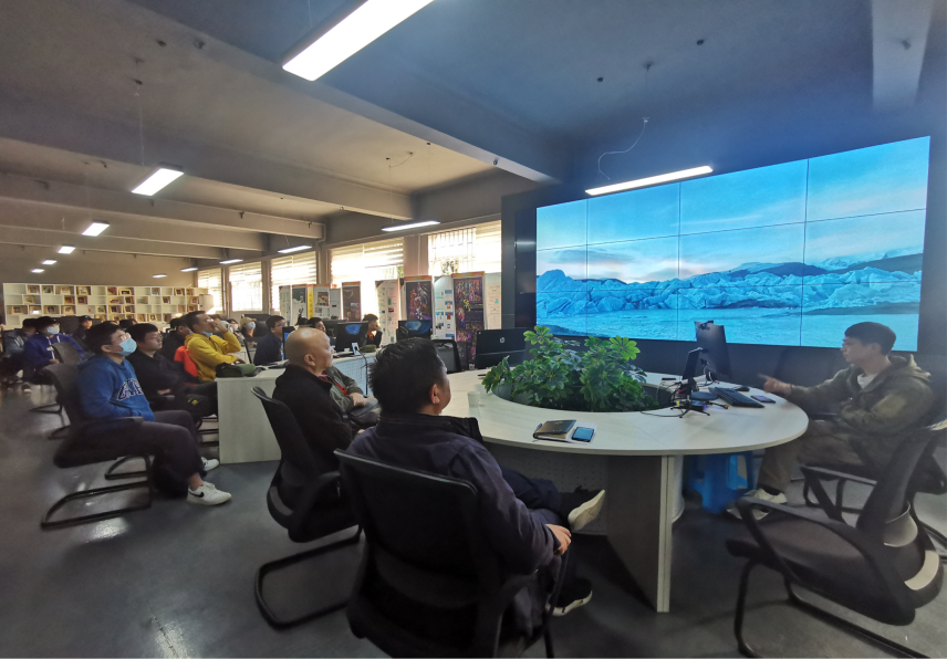 牛学教授以申报、创作和结项这三点为切入口,指出先要明确自己的兴趣点和现有的研究基础内容在哪,在阅读和独立思考之后再去探索,才可能有机会慢慢触碰到“学科里的未知领域”。接着牛学教授从自然风貌、民俗活动、宗教艺术、建筑艺术、民族服饰以及传统工艺六个角度深入分析国家技术基金摄影项目《藏源山南》,展示了如何利用不同的摄影表现方法对藏源山南特色文化进行全面的再现与表现。最后,牛学教授强调,做科研切勿抱着功利的态度,一定要有计划,有思考。在场师生与牛学教授进行了热烈的交流,受益匪浅。