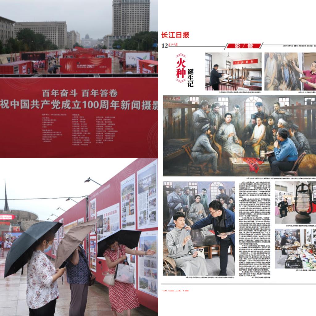 7月18日,“百年奋斗 百年答卷——庆祝建党100周年新闻摄影展”在北京中华世纪坛开幕,长江日报报业集团选送的建党百年主题报道以摄影专版形式,刊展了伟德国际1946bv官网沈祥胜教授党史学习作品《火种诞生记》,这是其中唯一的以人物为主题的专版。