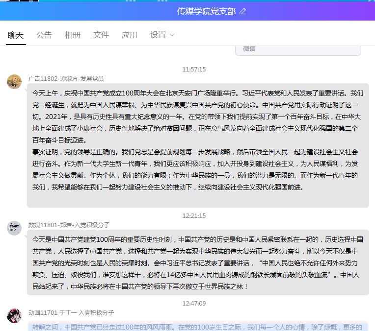 学生党员网上交流画面