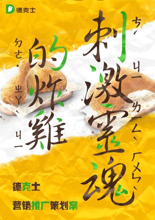 德克士组的主题为“刺激灵魂的炸鸡”。“刺激灵魂”不仅仅是指德克士炸鸡为目标消费者带来直击灵魂的味觉体验,更是向消费者传递出一种打破常规、追求刺激的炸鸡消费新观念。整个策划旨在激发15-35岁的年轻族对“刺激灵魂”这一概念的强烈好奇心,利用话题引流、打卡和联名盲盒等活动形式,使目标消费者对德克士炸鸡产生探索欲,从而走进德克士线下门店品尝美味炸鸡,最终德克士炸鸡以过硬的品质征服目标消费者,在消费者心中树立起新一代“炸鸡之王”的形象。