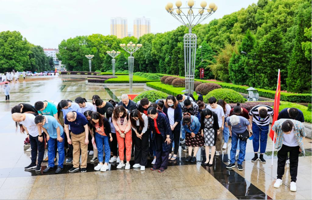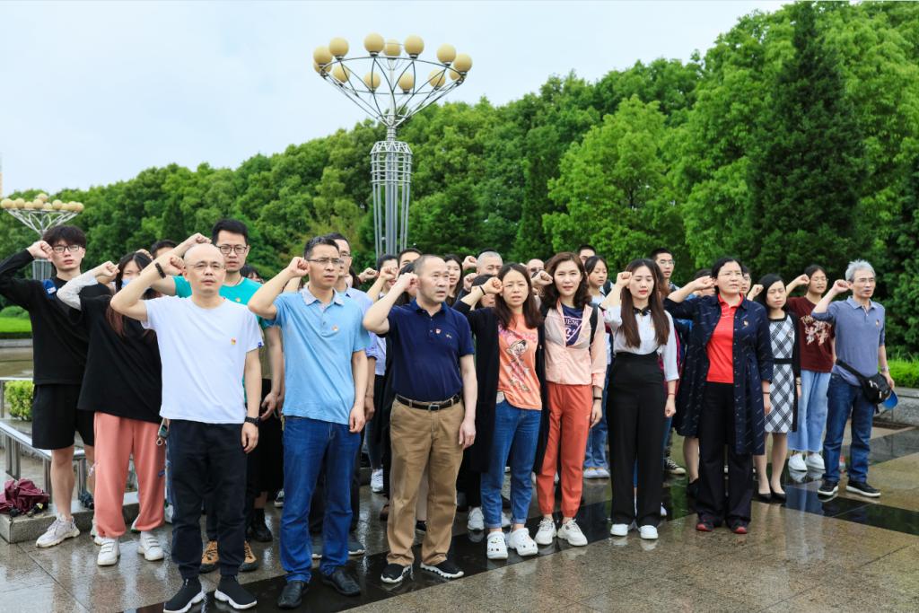红安是“黄麻起义”的策源地,是红四方面军的诞生地。红安县是“中国第一将军县”。 5月15日早晨,伴着阵雨,黄麻起义和鄂豫皖苏区革命烈士陵园庄严肃穆,在革命烈士纪念碑前,全体党员深深鞠躬默哀致敬,缅怀革命先烈。伟德国际1946bv官网党委书记曾令玉带领全体党员面对党旗,举起右拳,重温入党誓词,庄严的宣誓声响彻纪念园。