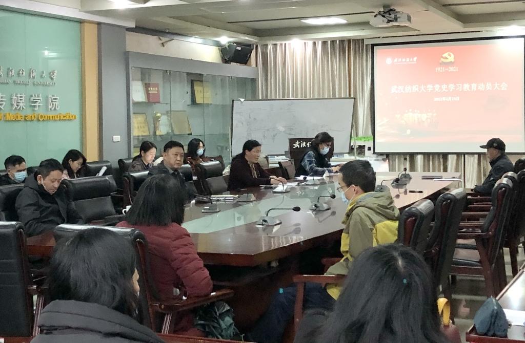 3月18日下午,传媒学院在西配楼s209召开教职工大会,学院党委书记曾令玉为全院党员教师做党史学习动员报告。