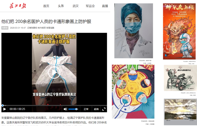 学院师生用镜头、画笔深入一线,走进脱贫攻坚的田间地头和抗疫一线的医院、社区,开展实践创作, 呈现时代重大历史变革,展现其中那些可歌可泣的人和事。今年疫情期间,学院金宜鸿老师策划创作的反映武汉东新分局警察抗疫的纪录片《我的硬核社区》(第一集、第五集)在爱奇艺独家播出,多日位居纪录片播放榜首,产生了强烈的社会反响,该纪录片入选国家广电总局2020年度第二季度优秀国产纪录片推荐目录。学院金宜鸿、叶科老师策划创作的抗疫作品《战袍》被国内多家主流媒体广泛报道,并被国家博物馆作为文物永久收藏。沈祥胜团队油画作品《火种》获批省委宣传部、省文联、省美协“永恒记忆 不朽丰碑”大型湖北党史重大历史题材创作项目。学院还承担了湖北省庆祝建党100周年《永恒记忆 不朽丰碑》湖北重大历史题材艺术创作纪录片的拍摄项目。
