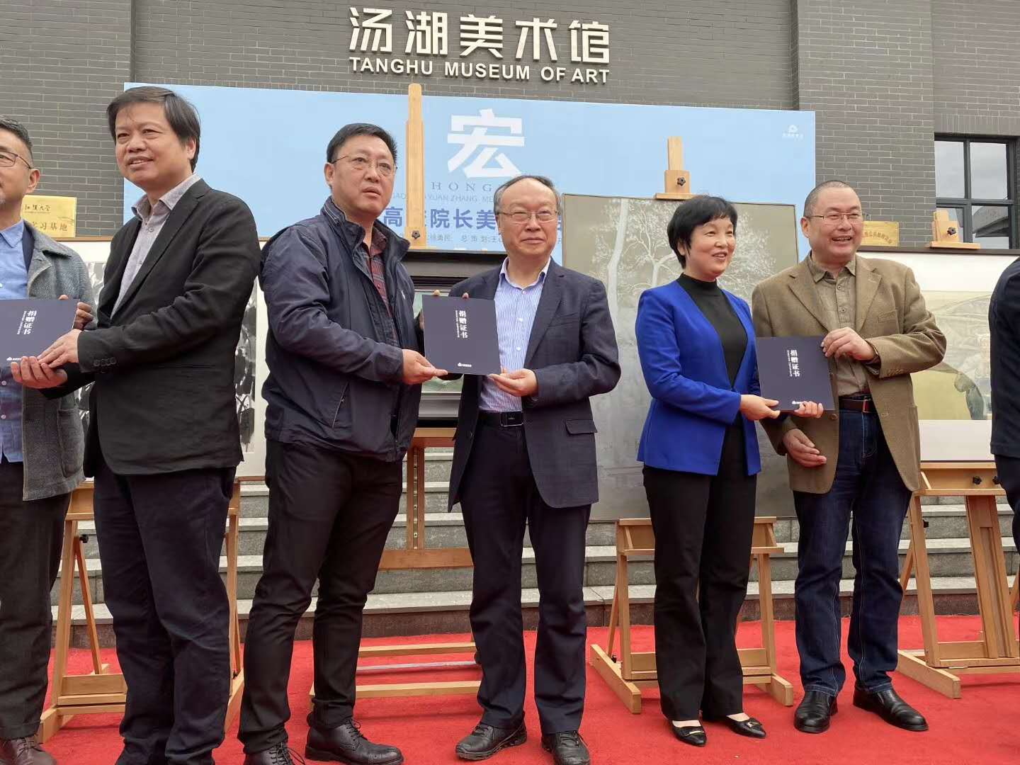 2020年10月25日上午,由湖北省美术家协会、汤湖美术馆联合主办,湖北省高校美术与设计教学指导委员会、湖北省高等教育学会艺术设计委员会协办,汤湖美术馆承办的“宏拓——湖北高校院长美术作品邀请展”在汤湖美术馆隆重开幕。开幕式由江汉大学美术学院副院长、汤湖美术馆副馆长柳国良主持。湖北省文联党组书记、常务副主席邓长青宣布展览开幕。本次展览,共收集了来自湖北高校七位院长艺术家参展作品105件。伟德bv1946官网伟德国际1946bv官网院长沈祥胜教授作品受邀参展。