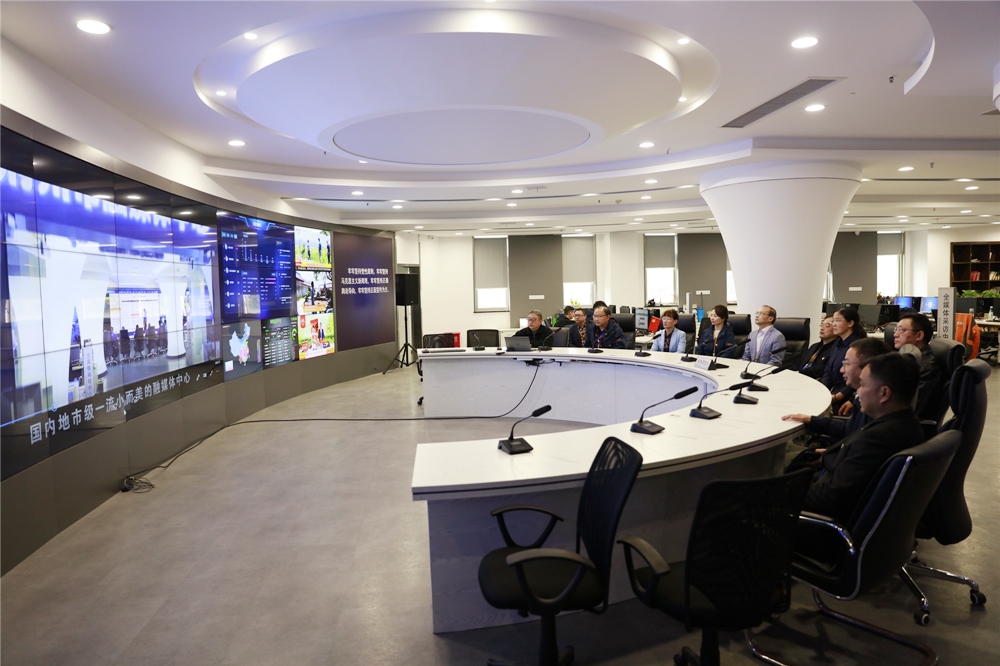 考察中,学院一行实地参观了荆州广播电视台融媒体指挥中心——现代新闻生产的中央厨房和神经枢纽,感受信息时代的舆情监测与大数据分析技术,了解电视媒体信息内容“一次性采集、多媒体呈现、多渠道发布”的新闻生产流程与“新媒体首发、全媒体跟进、融媒体传播”的全新传播格局。
