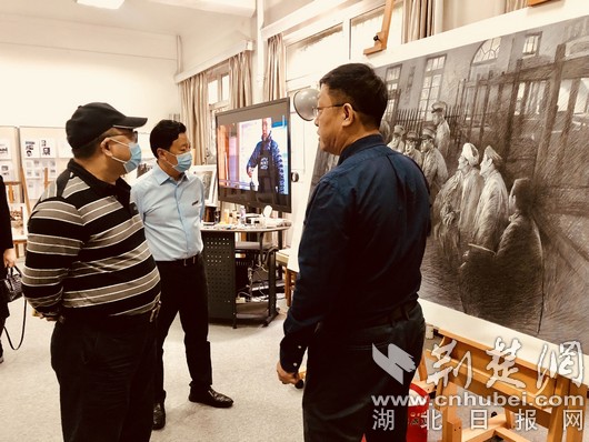 9月30日上午,省文联党组成员、副主席肖伟池,省美术家协会秘书长刘春冰一行来到伟德国际1946bv官网进行观摩指导。肖伟池指导bevictor伟德官网入口创作团队要注重全球视野,创作一流作品,让“永恒记忆·不朽丰碑”——湖北党史重大历史题材大型系列美术创作项目走向全国,走向世界。