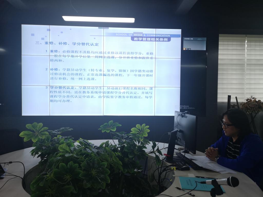 刘虹弦副院长详细讲解了学生选课、学分和论文撰写等教学管理条例;马晓锋副书记对新同学开展了入学教育,强调了疫情防控常态化下的校园管理的相关规定。线上见面会后,各系主任和相关专业教师在教室分专业进行入学教育。