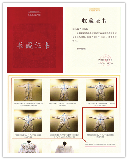 近日,伟德bv1946官网伟德国际1946bv官网教师金宜鸿和叶科在疫情期间创作的作品《战袍》(一套五件),被国家博物馆作为文物收藏,并颁发收藏证书(证书号:2020第028号)。