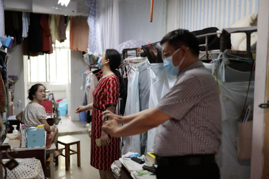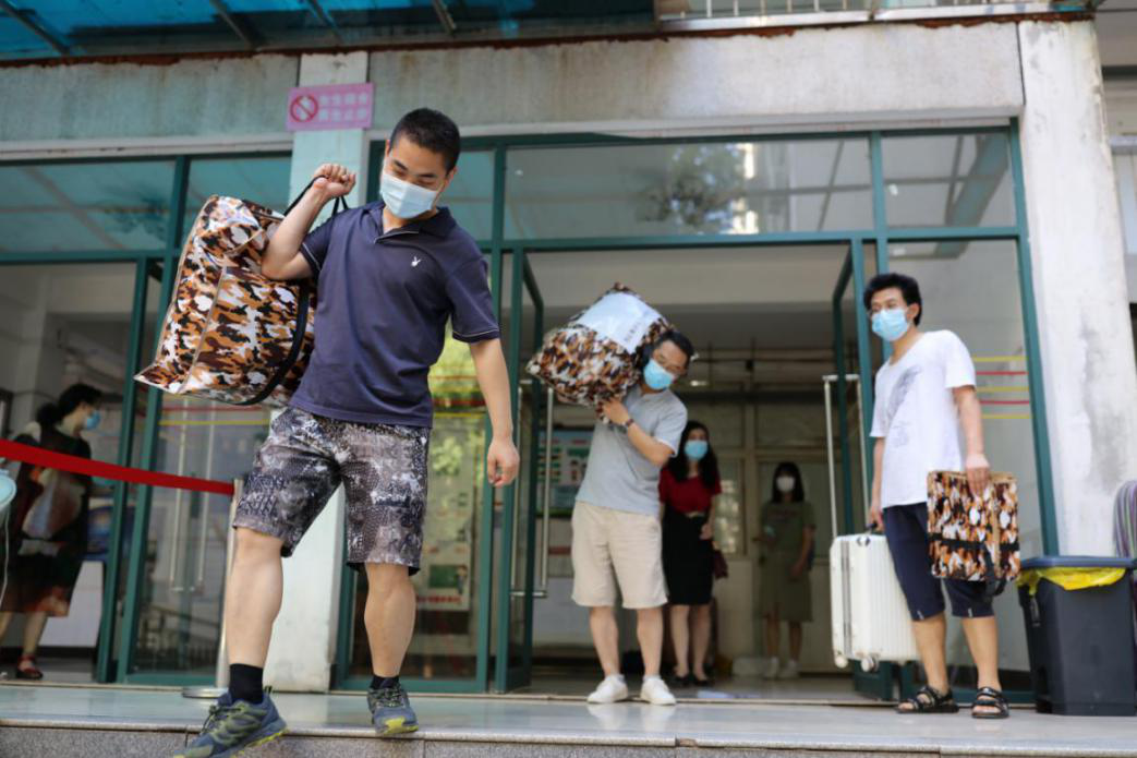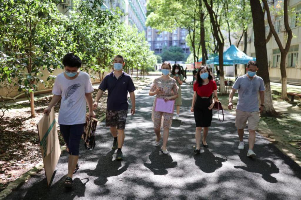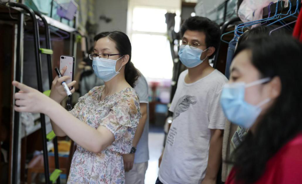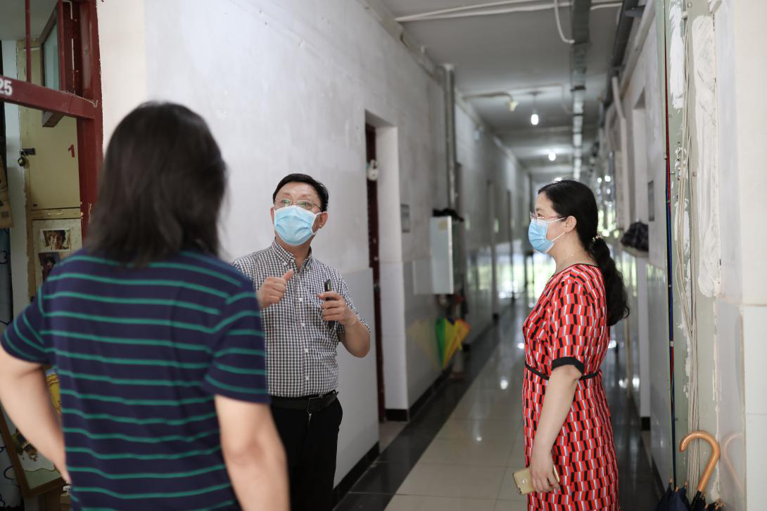 17:00点,曾书记、沈院长和刘院长又来到学生宿舍,对学生进行“最后的叮咛”,“你们是最特殊的一届毕业生!因疫情,半年未返校。在宿舍整理东西的时候要注意开窗通风,要戴口罩,中午食堂有免费的饭菜,凭畅行码就可以去吃,天气热,注意喝水……”曾书记的反复叮咛充满了不舍。