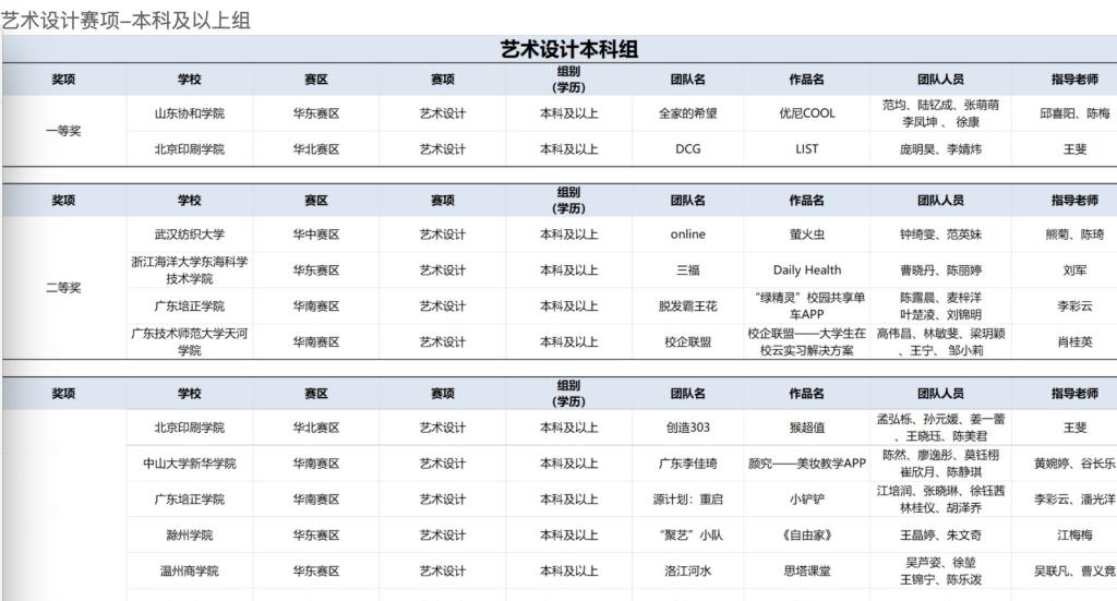 (华中区获奖名单截屏)
