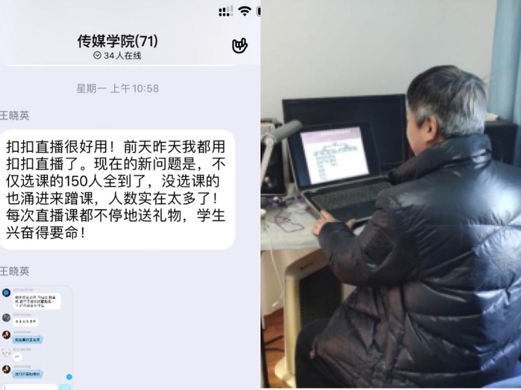 伟德国际1946bv官网专业课教师王晓英经常在网课结束后在教职工群里分享自己当天上课的感受,她说:“网上直播课远比她想象的效果好,许多同学听过一次后还拉着爸爸妈妈一起听,学生兴奋老师也兴奋,上课气氛十分活跃”。