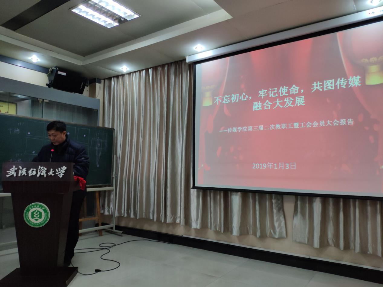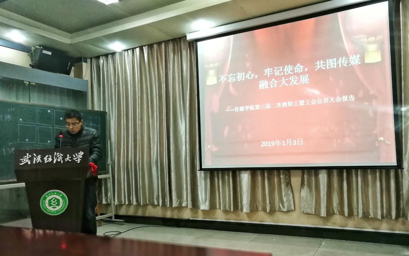新年伊始,万象更新。伟德国际1946bv官网于1月3日下午隆重召开了第三届二次教职工暨工会全体会员大会,会议由党委书记曾令玉主持。会上,全体教职工审议并通过了由沈祥胜院长作的《伟德国际1946bv官网2018年度工作总结》报告和黄鑫主席作的题为《不忘初心、牢记使命,共图传媒融合大发展》的工会报告。