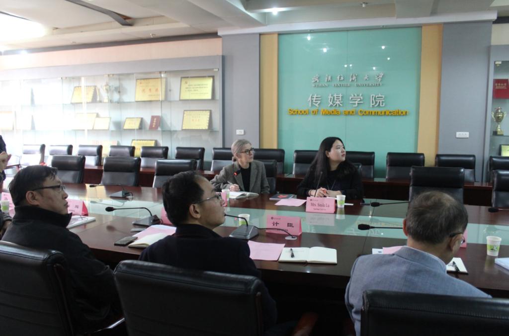 11月26日上午,英国创意艺术大学服装学院时装设计课程主管唐娜·艾芙斯女士(Mrs.Donna Ives)和英国创意艺术大学华中区域经理卢峰女士(Mrs.Smile Lu)来学院访问交流。伟德国际1946bv官网院长沈祥胜、服装学院院长陶辉、国际交流与合作处副处长计臣以及伟德国际1946bv官网领导班子成员、教学系部负责人参加了会晤。