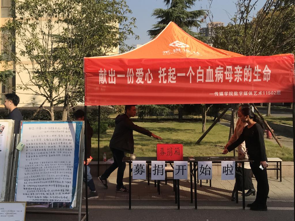 15级数媒班的同学在了解到同班同学的困难后,积极地伸出了援助之手,想尽办法进行最大程度上的帮助。10月31日,数媒班自发在图书馆门前道路上摆点进行募捐活动,竭尽全力希望为被疾病所困的家庭解燃眉之急。