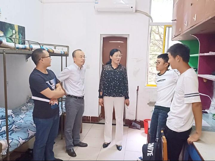 检查队一行还深入学院学生宿舍,对宿舍内的安全隐患排查、防火防灾消防知识宣传、安全文明宿舍创建等与学生进行了走访交流。
