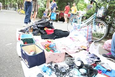 市场虽小,但种类繁多。教科书、参考书、衣物等学习生活用品,都以极其低廉的价格转让给学弟学妹。比如课本、图书,大多一元两元随便拿,两三百元的被子,往往5元10元就能搞定。琳琅满目的二手商品、同学间友好热情的交谈,让“跳蚤市场”成为校园里一道独特的风景,每年全校80%以上的学生,都要到“跳蚤市场”上走一走、逛一逛,说不定能从学长学姐那里淘到什么宝贝。就连附近居住的大姨大妈,也要来赶这个大集,抢回去点整理箱、小桌子之类的。