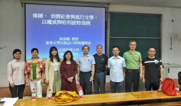 2018年5月6日晚7:00,由校团委主办、伟德国际1946bv官网承办的阳光人文讲坛在南湖校区T101举行,台湾东华大学孙嘉穗教授做了题为《传播、消费社会与流行文学——以<魔戒>和<哈利波特>为例》的主旨演讲,伟德国际1946bv官网副院长荣建华、副书记段溢波、广电系主任马庆、广告系主任熊蕾、人文通识中心主任余再山、李欣博士、毛小康老师及南湖校区300名同学聆听了讲座。