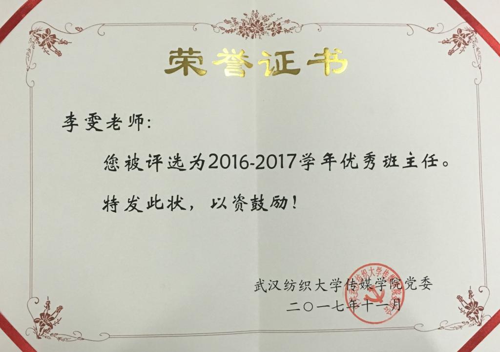 李欣、刘登冉、张晓静、阮筱吟、林凡、李雯等老师获评学院2017年度优秀班主任;全体班主任和同学们打成一片,相守相望,相得益彰,逐步形成学院美丽的风景。
