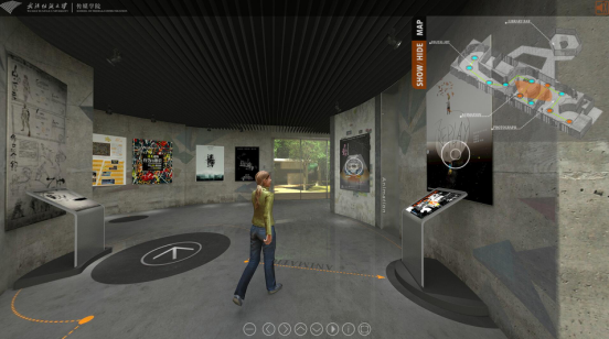 新生开学季,很多刚入学的学生对自己的专业以及将来的方向和目标充满了迷茫,数字展厅可以帮助大家了解自己的专业信息,以及对自己今后的发展起到引导和启蒙的作用。展厅里向学生们展示了动画,摄影,数媒,广播电视等伟德国际1946bv官网各专业学长学姐的优秀作品和对专业、学院的介绍,基本涵盖伟德国际1946bv官网所有专业。不仅如此,其中所涵盖的平面设计,3D动画,广告排版等知识也是可以供大家发掘吸收的。展厅内还兼容视频播放窗口,可以直观学习欣赏学长学姐的动画作品,从图一左侧还可看到伟德国际1946bv官网门口街道,学生拿起手机进入展厅,展厅可随人的步伐转向,代入感强烈,仿佛置身于真实画面之中。