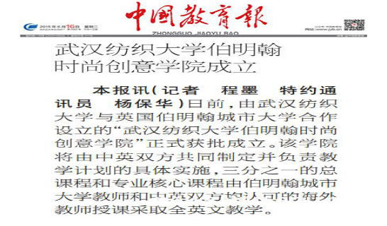 6.参与申报的“bevictor伟德官网入口伯明翰时尚创意学院”成功获批湖北省第一所本科层次中外合作办学机构。