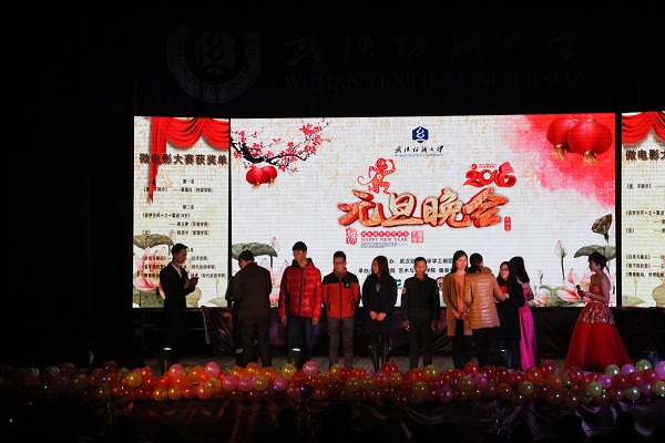 2015年12月27日晚7点, 2016年元旦迎新晚会暨微电影大赛颁奖典礼在南湖校区大学生活动中心隆重开幕。本次活动由学工团委主办,伟德国际1946bv官网、艺术与设计学院、服装学院、国际学院承办,校党委副书记刘在洲、学工部部长金艳、学工部副部长曾令玉、后勤集团副书记范静和二级学院党政领导观看了晚会。