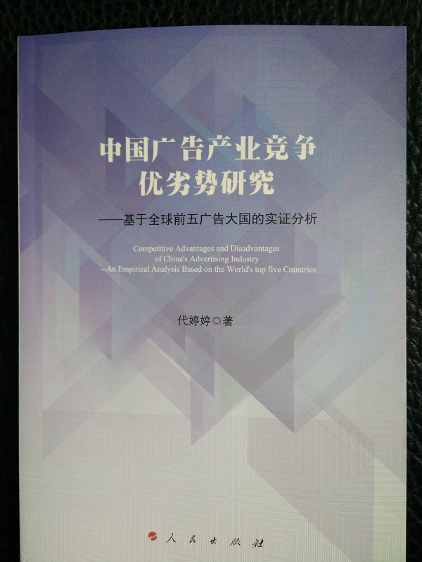《中国广告产业竞争优劣势研究——基于全球前五广告大国的实证分析》一书由人民出版社出版,23万字,该书以独特、综合的视角,以国家意识和问题意识双重导向,分析中国与其他发达国家广告产业的优劣势与形成原因,借鉴各国特色经验,以期对中国迈向广告产业强国提供建设性意见。