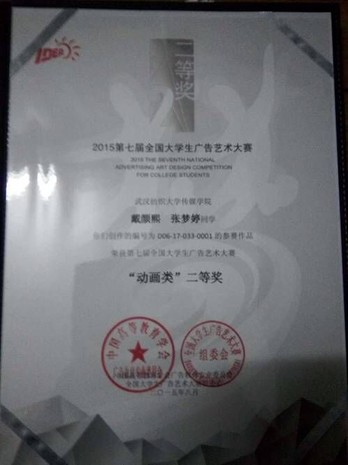 近日,第七届全国大学生广告艺术大赛颁奖典礼在全国政协礼堂隆重举行。伟德国际1946bv官网叶科老师指导,戴妍熙、张梦婷同学创作的动画作品获得“动画类”全国二等奖。