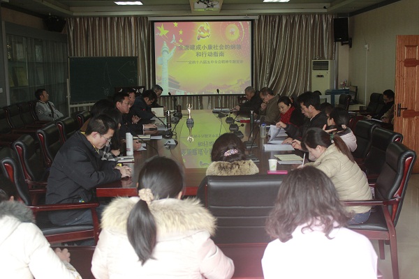 会上,汪圣云书记详细解读了十八届五中全会上通过的《中共中央关于制定国民经济和社会发展第十三个五年规划的建议》,其核心内容就是确立到2020年我国如期全面建成小康社会的奋斗目标,即经济保持中高速增长,到2020年国内生产总值和城乡居民人均收入比2010年翻一番;突出解决农村贫困人口脱贫;国民素质和社会文明程度显著提高;生态环境总体改善;各种制度更加成熟和更加定型。此外,汪圣云书记还对全会提出的"创新、协调、绿色、开放、共享"五大发展理念进行了解读。