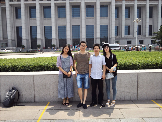 图为获奖学生与广告06级学长在国家博物馆门前合影留念