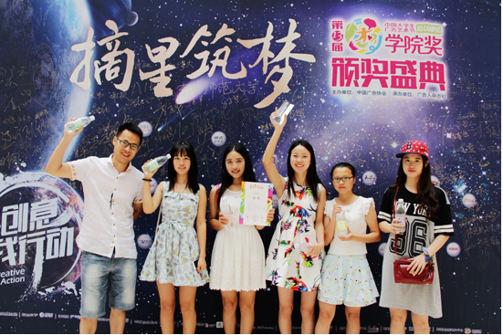 中国大学生广告艺术节学院奖是目前国内唯一由国家工商总局批准、中国广告协会主办的大学生广告艺术大型赛事,评委由知名广告专业学者、知名广告公司创意大师、知名企业营销广告专家组成。本届学院奖共收到来自全国一千多所高校提交的120576件作品,庞大的数字昭示了学院奖广泛的影响力。伟德国际1946bv官网12级广告学专业的李龙玉、连杰、胡丽芳、马亚苹、尹素薇同学创作的影视广告作品《“碱法”苏打水——给自己一瓶水的时间》在众多作品中脱颖而出,获得了视频组银奖。12级广告学专业的杨宏建、郑春生、梁玉麟、龚俊元、邝箭同学以金立手机为命题创作的影视广告作品《特“立”独行》荣获视频组铜奖,冯易老师获得学院奖“杰出指导老师”。