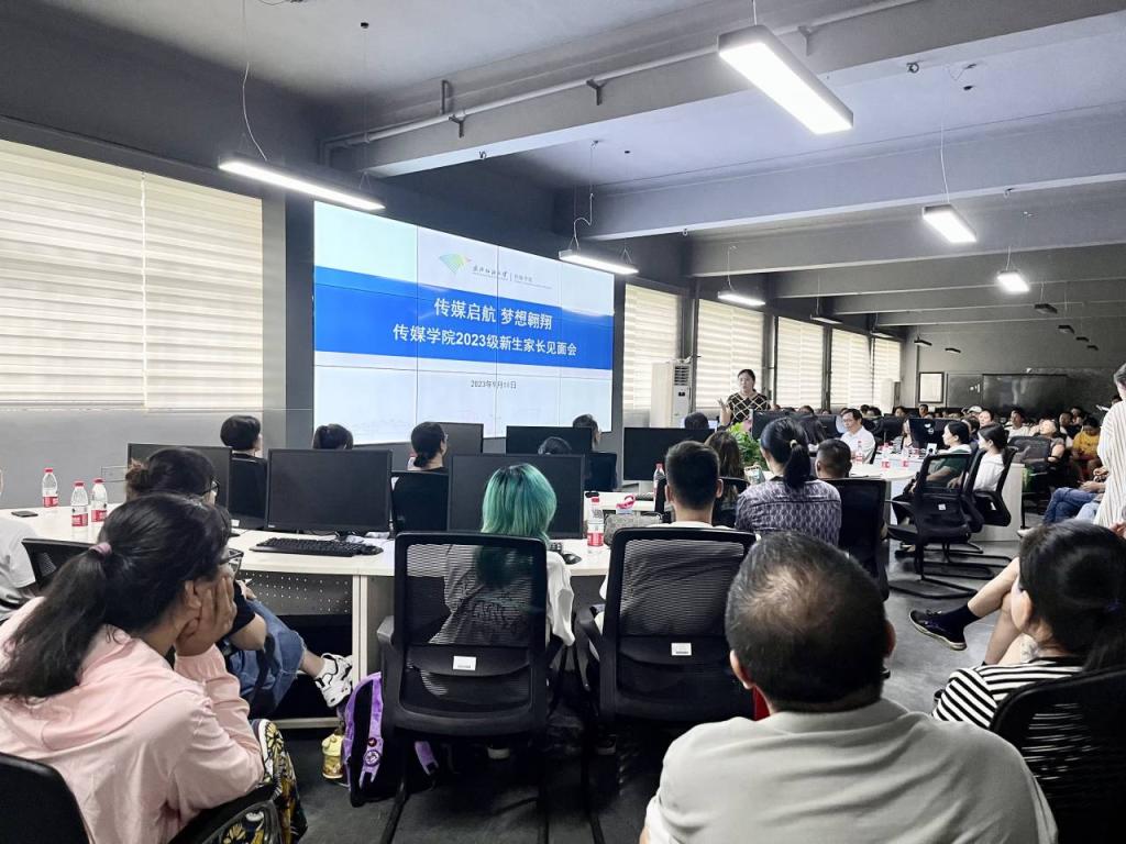 见面会现场还就2023级新生优秀视频作品和在校生获奖作品进行展播。会后,学院与新生家长共同游览参观校园并合影留念。