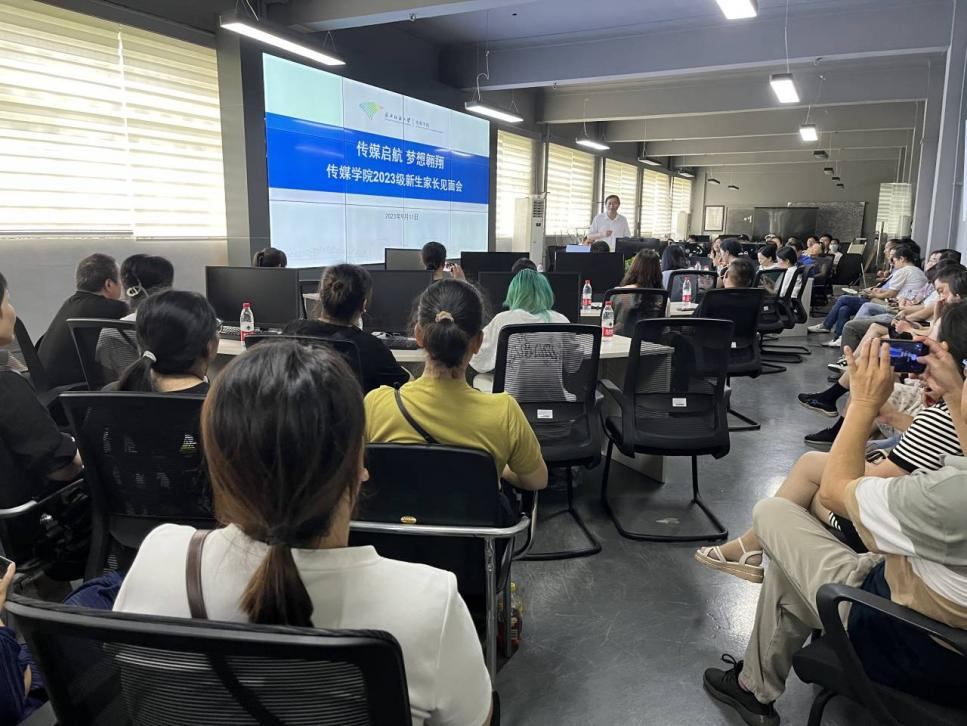 见面会伊始,家长们共同观看了学校宣传片《美好纺大创造美好生活》和学院宣传片《媒•界》及各专业风采展示视频,从历史沿革与成就、教学与科研团队、专业方向与教学特色、课程体系与实践锻炼和学业规划与职业发展等多方面对学校和学院人才培养的基础、目标、条件和要求进行了全面、深入了解。