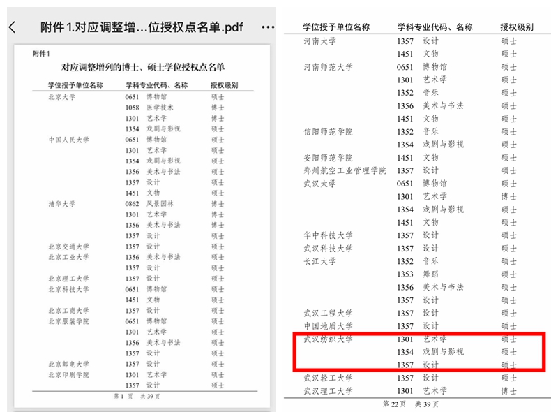 近日,经国务院学位委员会审议批准,伟德bv1946官网戏剧与影视(1354)硕士专业学位授权点的对应调整申请获批,同时,不再保留广播电视艺术硕士学位授权点。同批次调整获批戏剧与影视硕士专业学位授权点的省内高校有武汉大学与武汉体育学院。