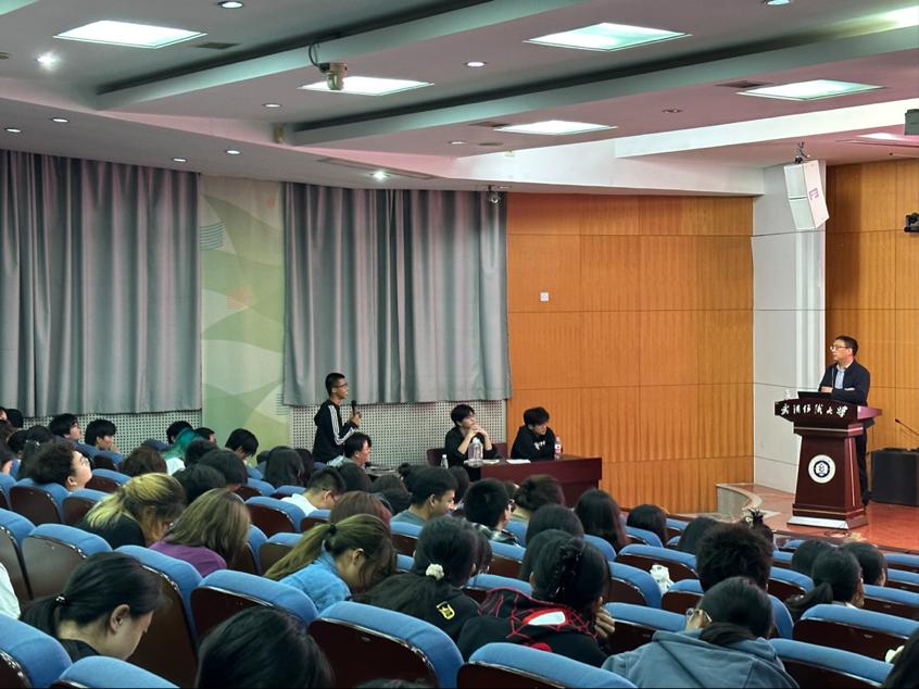 讲座尾声,王道勇与在场同学们进行了互动交流,耐心解答了同学们提出的疑惑,并寄语广大新生:在未来四年,珍惜时光,修炼品格,收获知识,增长才干,保持热爱,不负山海,未来可期。