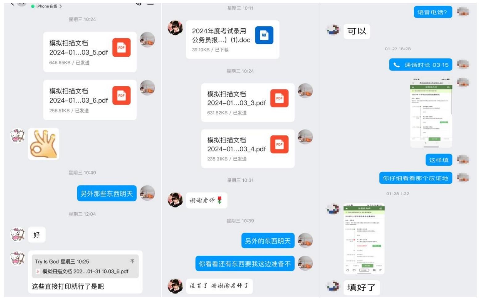 1月30日,国家税务总局湖北省税务局发布2024年度考试录用公务员面试公告,毕业生辅导员当晚联系进入面试同学准备相关材料并指导进行面试确认和资格复审。次日,将报名推荐表、成绩单等资格复审所需材料第一时间盖章扫描并邮寄到学生手中。对有入伍意愿的学生,线上指导学生进行征兵网报名。密切关注未就业毕业生,在求职就业中遇到的“急难愁盼”问题,进行积极回应。
