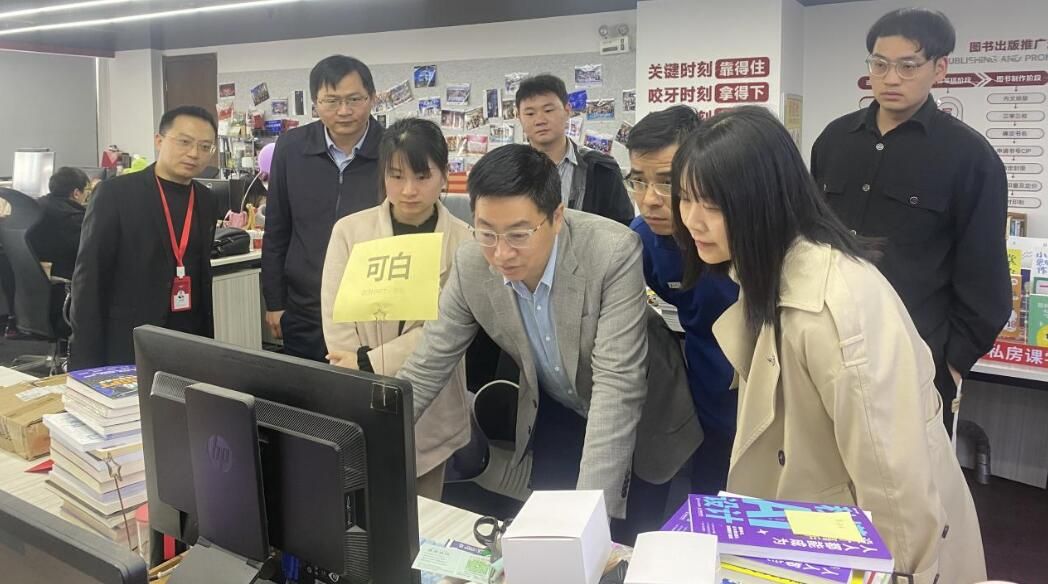 在秋叶集团-武汉幻方科技有限公司交流期间,学院一行参观了公司AI工作坊、新媒体矩阵运营部、培训事业部、图书出版中心、企业文化中心,深入了解新媒体行业发展现状和未来发展趋势以及秋叶PPT系列“网课+图书+训练营”及融媒体训练营的业务模式以及未来的发展规划。