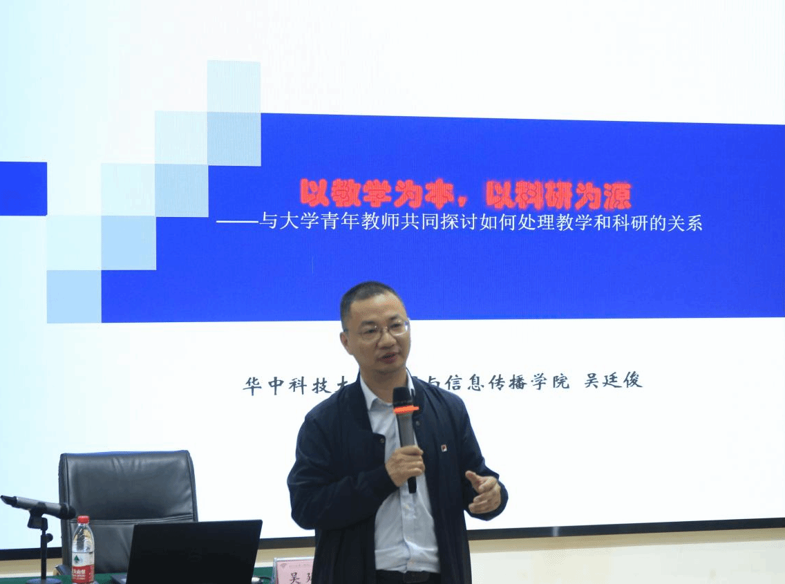 讲座伊始,吴廷俊教授明确指出,教学与科研是大学教师肩负的两项基本职责,它们共同指向了"育人"这一核心目标。在探讨如何平衡教学与科研这一关键问题上,吴教授表示,教学与科研有首颔之分和本源之别,大学教师应以教学为首,科研为颔;教学为本,科研为源。