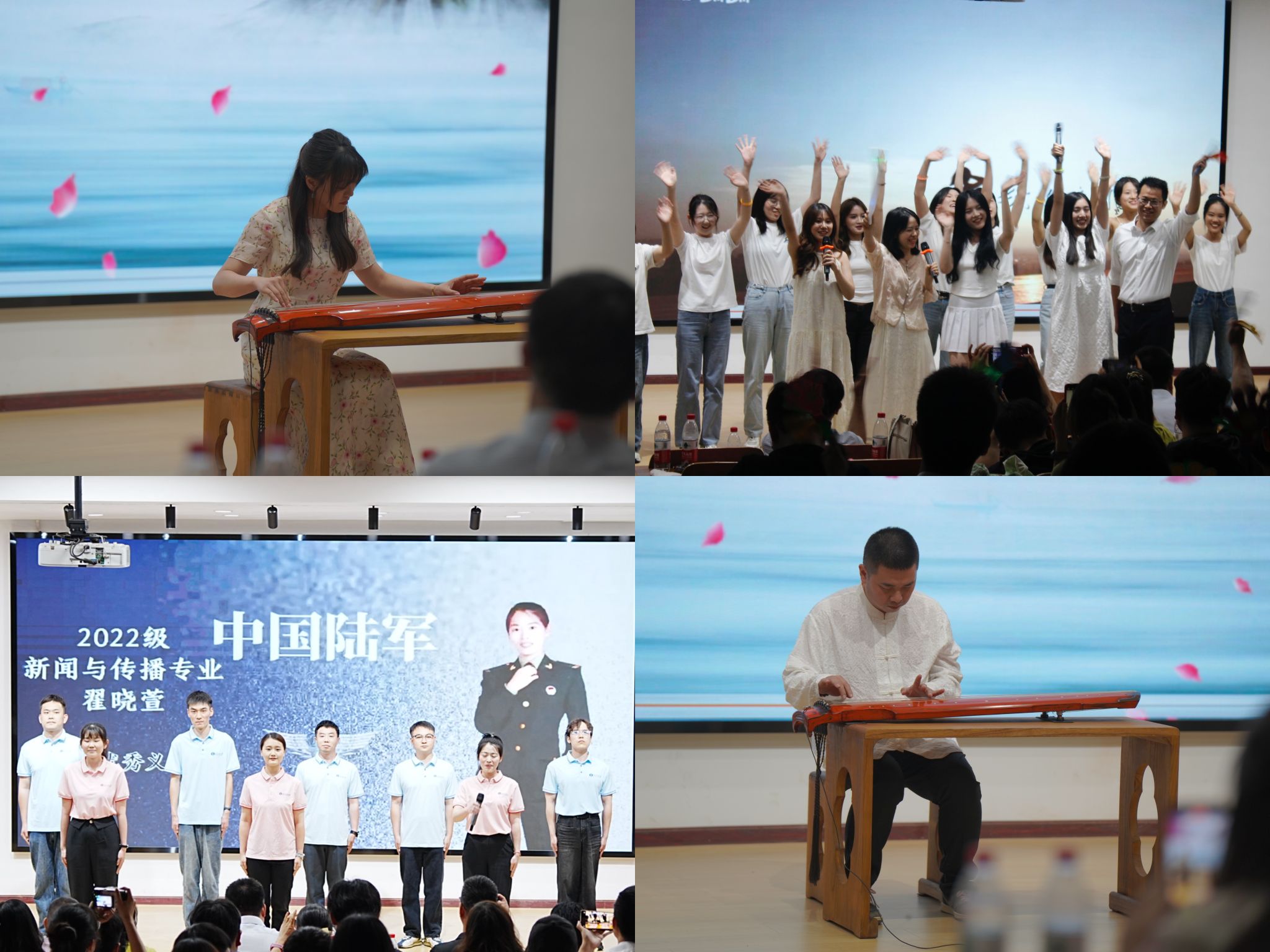 筑梦未来,再启新程,心怀梦想,展翅翱翔。联欢会上,望海军勉励毕业生们:要秉持初心,不忘来路,书写青春新一页;要笃行不怠,行稳致远,迈出人生新一步;要心怀期冀,乐于奉献,谱写青春新乐章。退役大学生士兵们以一曲《当这一天来临》展现了年轻一代的昂扬风貌和飒爽英姿,表达了矢志奉献的报国志向和挺膺担当的奉献精神。青年教师窦瑞晴以古琴独奏《明月几时有》弹出了对毕业生们的惜别之情与美好祝愿;受现场热烈氛围感染,王佳琦即兴演奏一曲《高山流水》,抒发了知音难觅、珍重情谊;山高水长,友谊长存的无限思绪。晚会最后,全场师生共同唱响歌曲《再见》,将整场活动推向高潮,离别不说再见,青春不说再见,奋斗者正青春,在悠长美好的曲调中,活动落下帷幕。