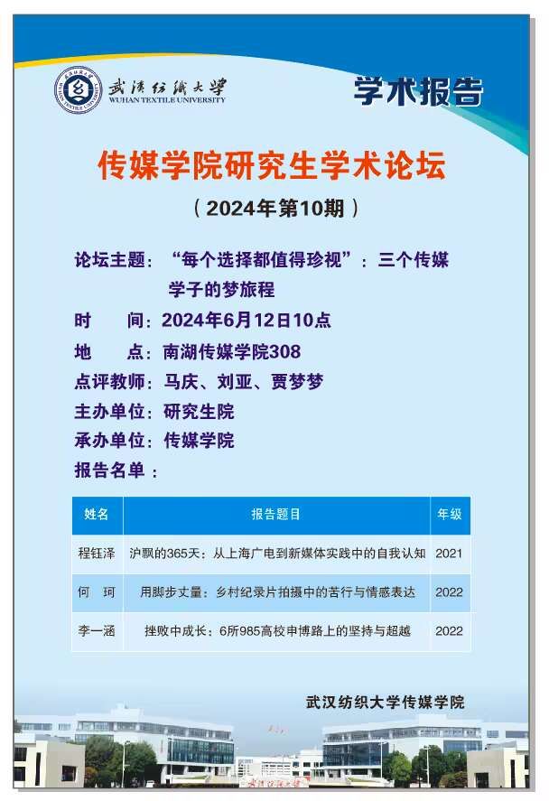 三种别开生面的学术视角,全新的分享体验,感染了在场的每一位参会人员。6月12日,3位伟德国际1946bv官网结合自身逐梦经历,完成“自己与自己对话,自己与理论对话”的田野调查,用心用情诠释伟德国际1946bv官网2024年第10期研究生学术论坛主题——“每个选择都值得珍视”。