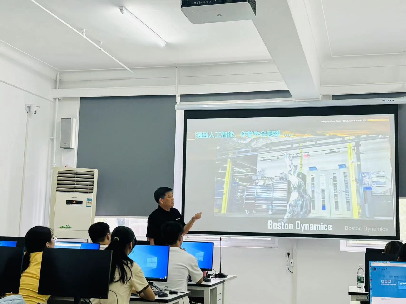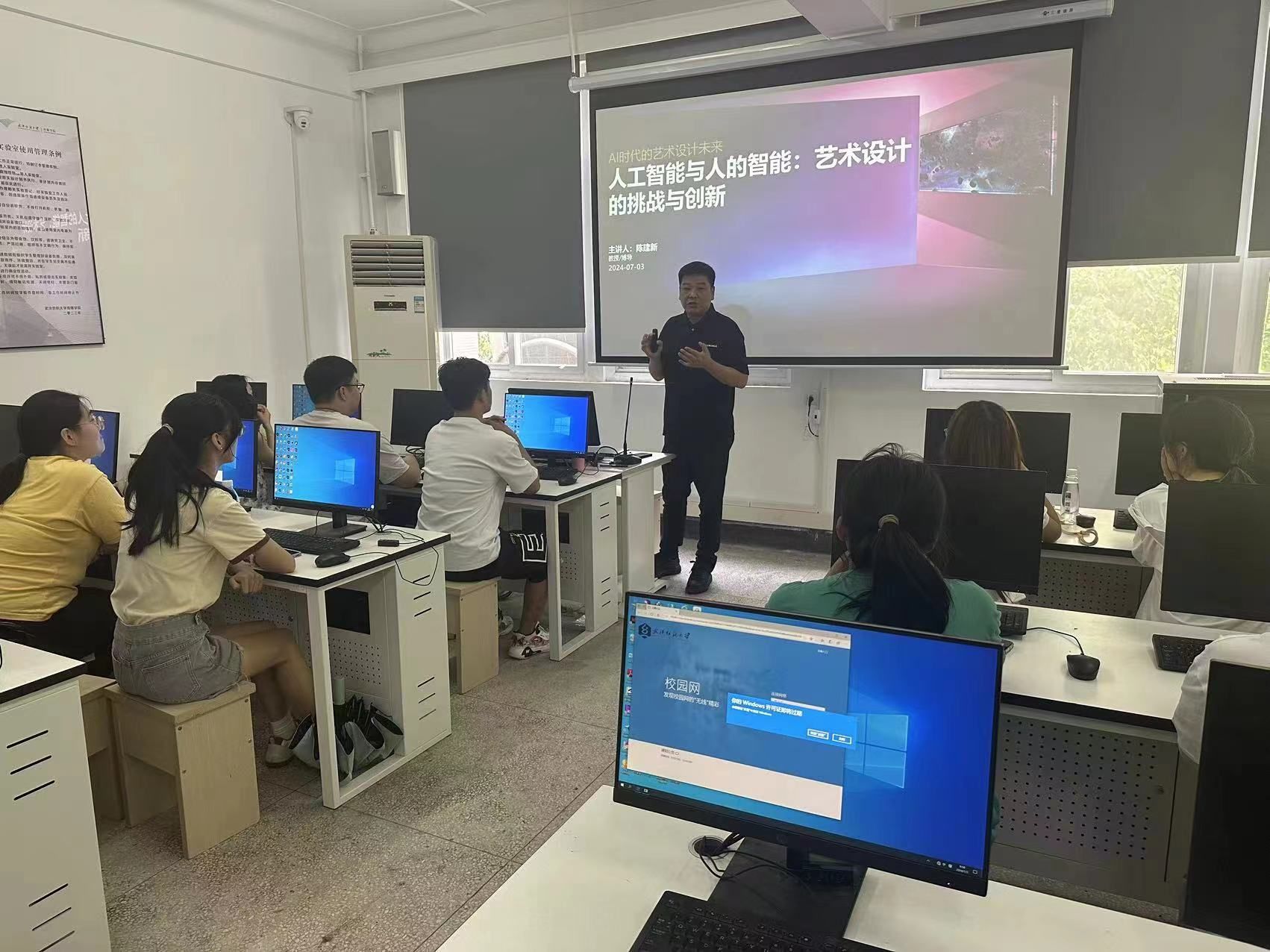 作为设计资深专家,陈建新教授结合自己多年的科研、教学和实践经验,在“人工智能与人的智能:艺术设计的挑战与创新”专题讲座中深入探讨了人工智能与传统艺术设计之间的互动与融合。他分享了一些具有代表性的案例和AI设计工具,展示了人工智能在解放艺术家创造力方面的独特贡献,分享了武汉理工大学艺术与设计学院学生利用生成式AI设计工具制作的各类设计作品。陈教授展望了艺术设计在人工智能技术持续进步的驱动下未来可能面临的挑战和机遇,他呼吁同学们要积极探索和接纳新技术,不断拓展艺术创作的新边界。