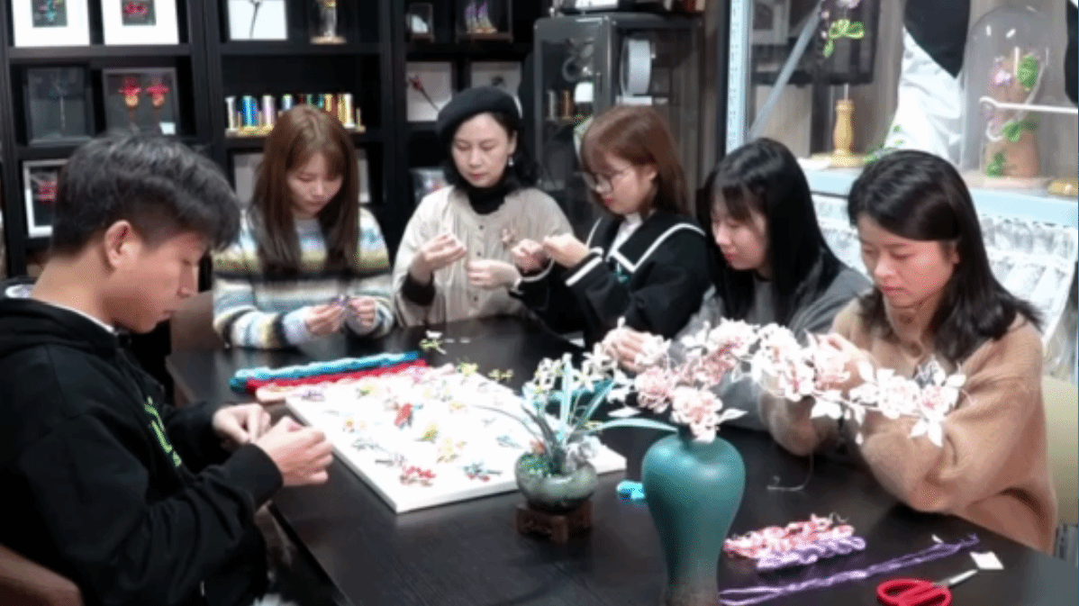 郭丽教授带领团队用英山非遗缠花工艺制作道具发卡