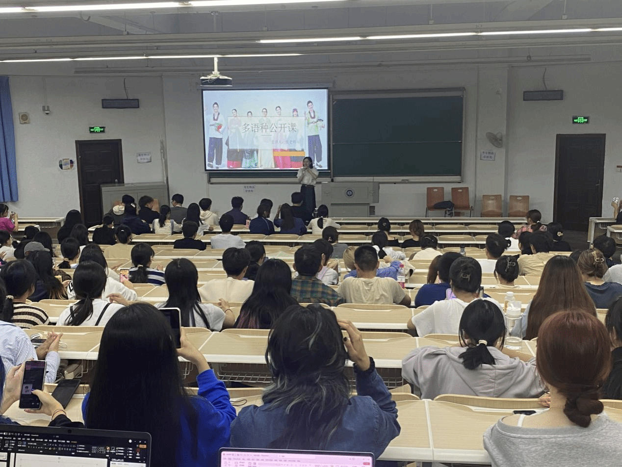 在讲座的首部分,张老师向同学们介绍了关于日、韩、法小语种学习的内容以及学习用处。其中,张老师以韩语为具体讲解,通过教授基础韩语激发了学生们的兴趣,并通过趣味性的例子深入讲解了韩流文化、韩文的结构和语法。张老师告诉同学们学习小语种不仅是兴趣,同时也为自助出国旅游、出国留学带来很大优势。在整个过程中,学生们全神贯注,积极参与张老师的讲解课,师生互动性强,帮助学生认识到可以通过小语种来找到未来发展的其他道路,不被单个道路局限住,了解到未来道路的多样性。
