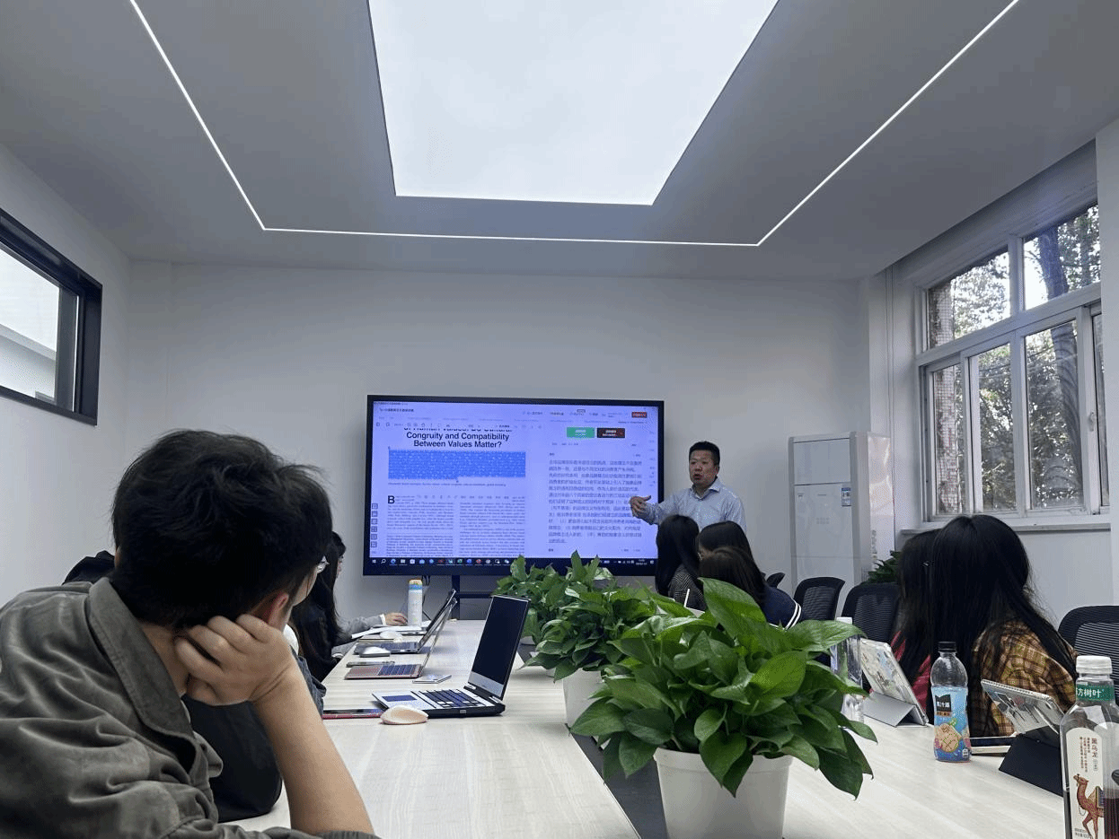 研究生宋童探讨了拟人修辞与可持续社会规范呼吁之间的交互作用对用户回收意愿的影响,提出在在无拟人化的情况下,描述性规范呼吁比禁令性更能增强消费者回收意愿,而在有拟人化的情况下,禁令性规范呼吁比描述性更能增强消费者回收意愿。研究生余凡从文本视觉设计的角度,探讨了绿色广告诉求类型与字体类型之间的交互效应对绿色产品购买意愿的影响。研究生付艺欣则分享了与自己选题“社交媒体广告中品牌价值观与影响者类型的匹配效应对消费者品牌认可态度”相关的文献,并向老师们提出了自己在文献阅读过程中的问题。