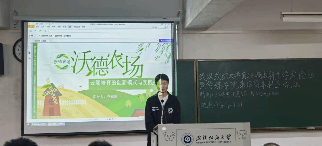 广告12201班的李德胜同学在《沃德农场---云端培育的创新模式与实践探索》中,以如何将所学专业与乡村振兴紧密结合为核心议题,对该项目的产品特点以及行业市场进行了详细地分析,充分解读其商业模式,为乡村农业经济与社交媒体融合提供新思路。