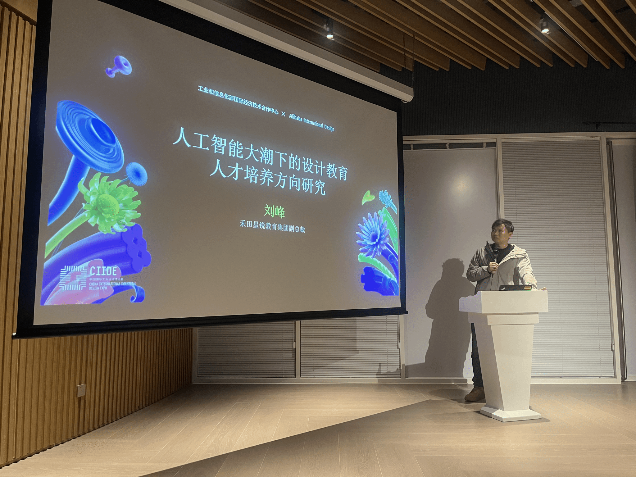 讲座伊始,刘峰向同学们展示了AIGC在数字艺术创作、视频设计等多个领域具体应用中的生动案例,讲解了AIGC的相关基础知识以及发展现状,从行业发展角度深刻剖析AIGC在设计当中的运用实践,指明了AIGC技术给创意设计领域带来的革命性变化。通过分享产学研结合的背景下,禾田科技推动AIGC技术与创意设计的深度融合,帮助设计师短时间内完成高质量的作品创作,并在实际应用中快速得到反馈和优化这一过程,他提出,AIGC不仅可以在艺术创作中提供新的灵感和创意,更能够在降低学习成本、激发创作欲望、提升创意表达,鼓励同学们利用AIGC技术辅助专业课和设计竞赛项目,摆脱传统设计师思维,从而转变为会使用AI的“设计工程师”,适应未来AIGC发展新范式。他强调,AIGC的广泛应用将不再局限于简单的图像生成,而是能够帮助创作者更加高效地实现跨学科、多领域的艺术融合,为设计领域带来前所未有的创新空间。